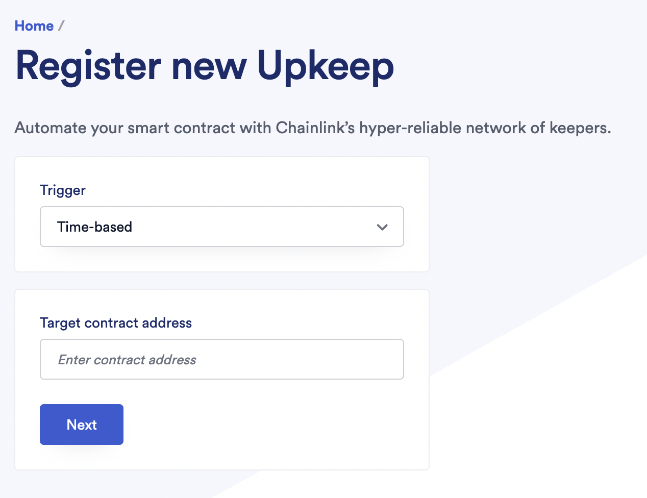 - Upkeep name: This will be visible in the Chainlink Automation app.